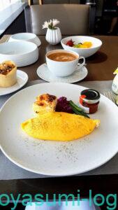 メインディッシュは九条ネギが入ったオムレツをオーダー