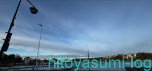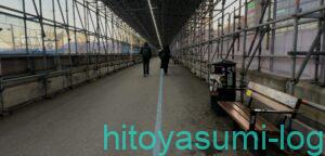 降りたら外に出て右へ進み、上部が建設中のような道をひたすら歩きます。車道と歩道分かれているので注意しましょう。